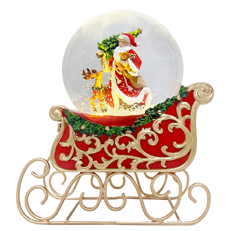 Globo de nieve de Papá Noel, reno, árbol de Navidad, globo de nieve con base de trineo y LED, sin música.