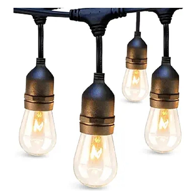 Luces de Cordón para Exteriores de 48 pies, de grado comercial, resistentes a la intemperie, con 18 bombillas vintage Edison, 15 enchufes para colgar (3 bombillas de repuesto), listadas por ETL, luces decorativas robustas para Navidad para patio y jardín.