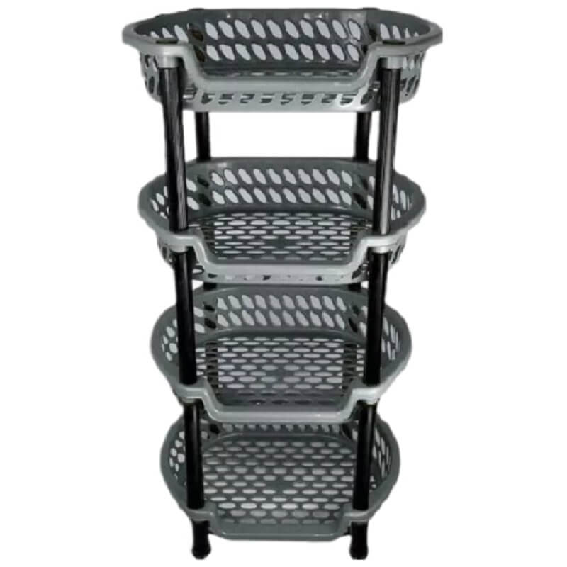 Organizador de estante de 4 niveles fabricado de plástico de alta resistencia. Se puede usar lo mismo en interiores que exteriores. Adecuado para cualquier espacio pequeño, como por ejemplo esquinas y ángulos no utilizados.