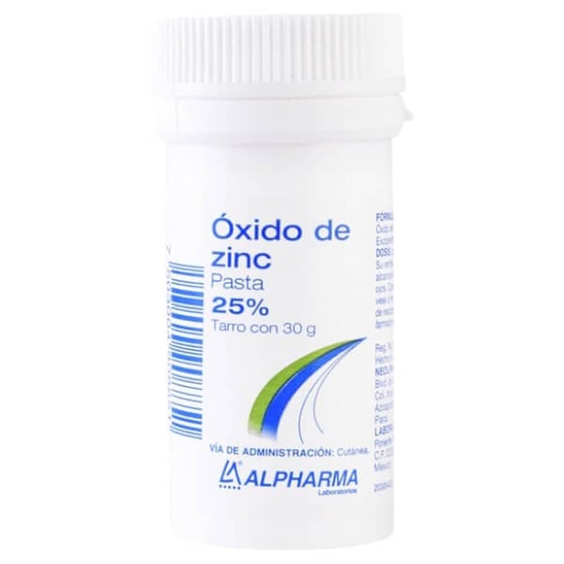 Óxido de Zinc 25%: Pasta de Lassar Andrómaco 30 g, utilizado para el alivio del ardor y comezón e indicado en irritaciones leves de la piel como heridas leves, quemaduras superficiales y picaduras por insectos o rozaduras.