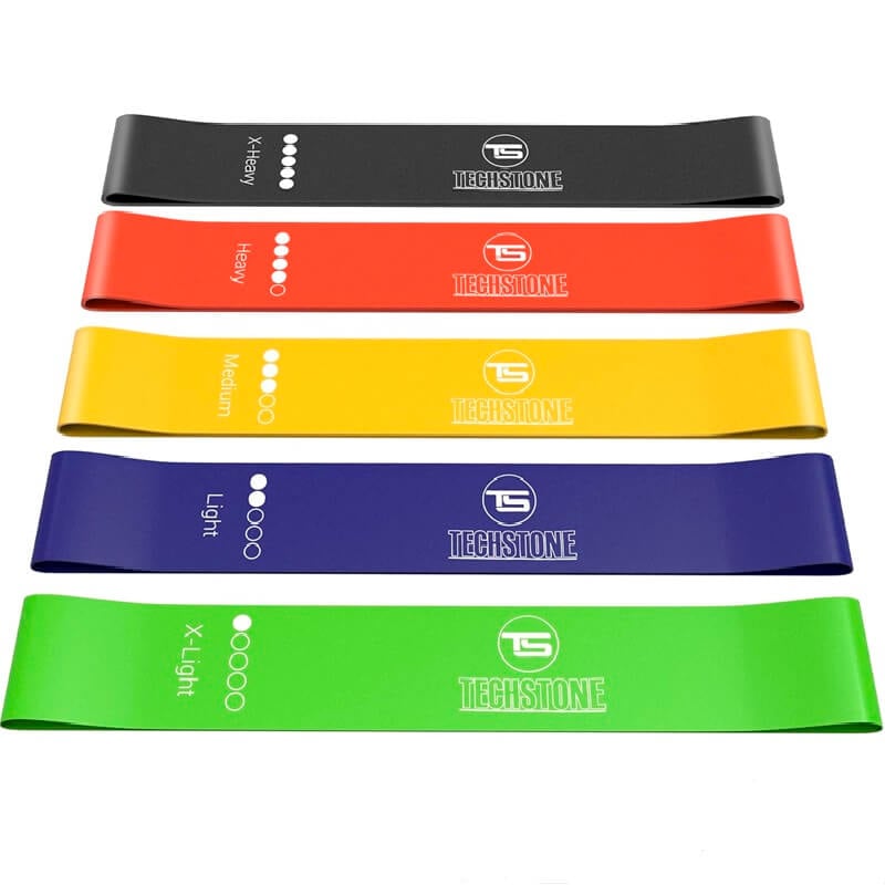 Combo de 5 niveles diferentes de banda elástica para entrenamiento fitness, pilates, yoga, fuerza o cualquier otro tipo de ejercicios.