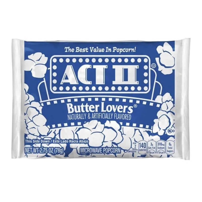 Paquete de palomitas de maíz con sabor a mantequilla, marca ACT II.