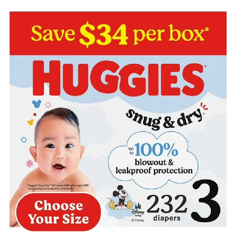Pañales para bebé Huggies Snug & Dry, Talla 3 | 232 u