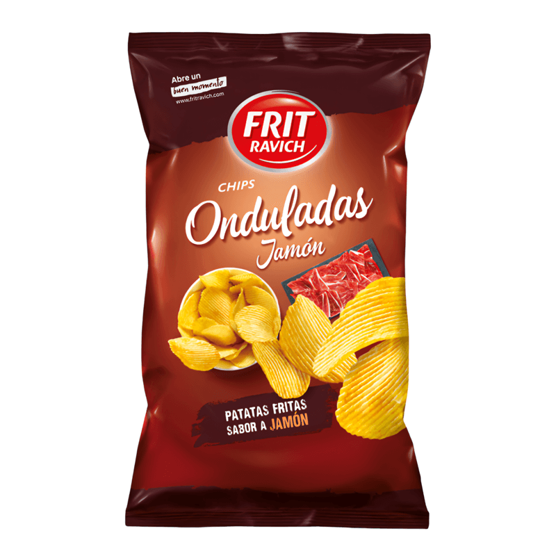Chips onduladas sabor jamón, marca FRIT RAVICH.