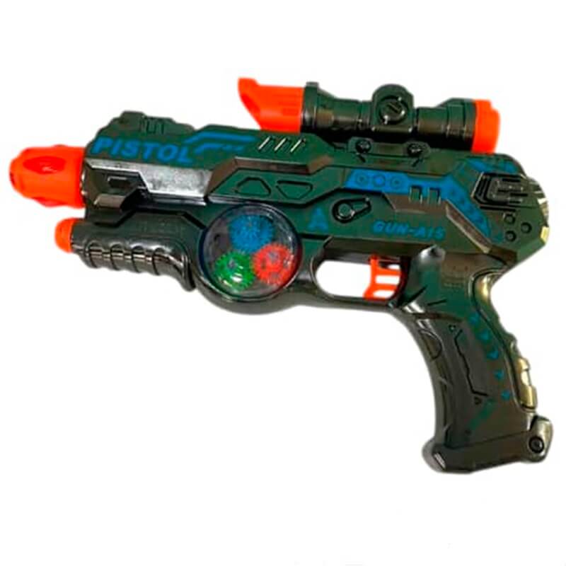 Pistola de juguete con luz y sonido. Se incluyen las pilas.