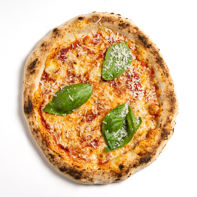 La clásica pizza italiana en su forma más pura: ligera, equilibrada y llena de sabor. Un homenaje a lo esencial. Masa perfectamente fermentada, tomate aromático, queso y basílico fresco.