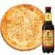 Pizza Aaron que contiene doble queso blanco, más un líquido (Malta Guajira).
