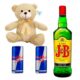 Oso de Peluche de 25 cm y Botella de Whisky JB con 2 ligantes.