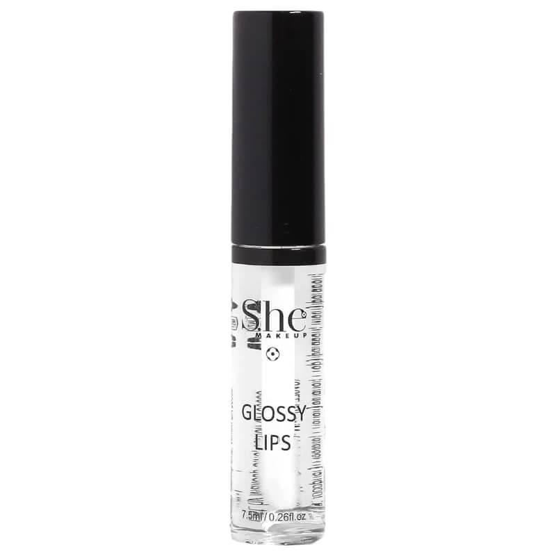 Brillo de labios liso transparente, marca She Makeup.