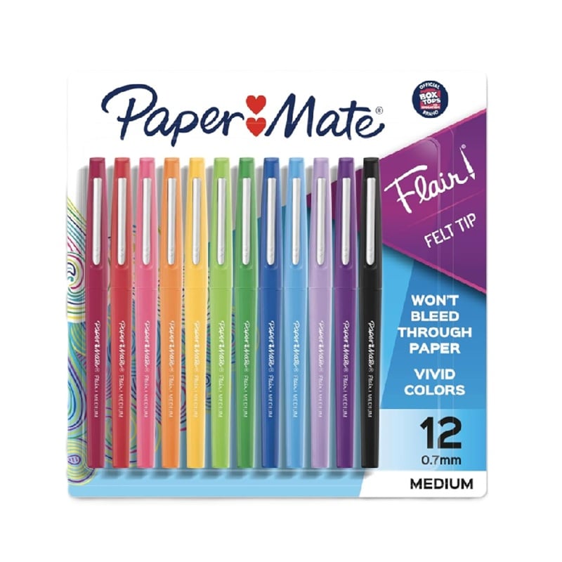 Paper Mate Flair – Rotuladores de punta de fieltro de punta media de 0.028 in, suministros escolares para profesores y estudiantes, colores surtidos, 12 unidades.