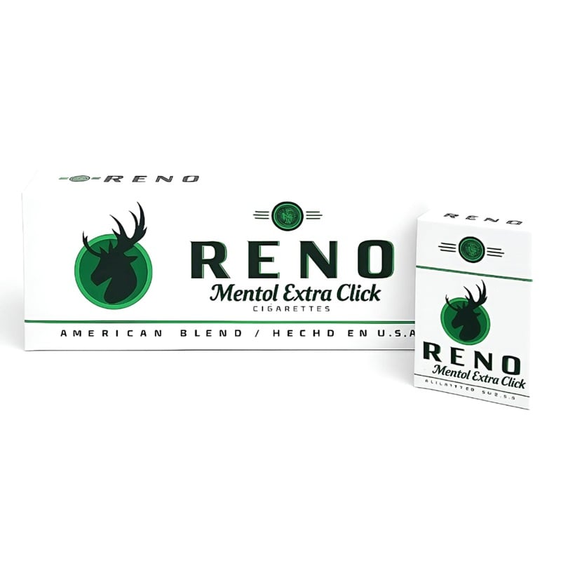 Rueda Cigarros Reno extra mentol click. Hecho en USA. Nicotina 0.8mg, Alquitran 17mg, monoxido de carbono 19mg