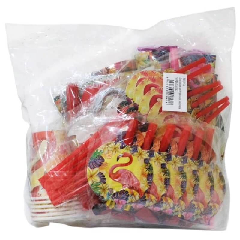 Set para fiestas temática Flamenco Rosa compuesto por 10 artículos: