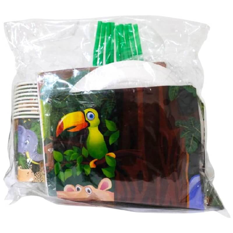 Set para fiestas temática Jungla compuesto por 10 artículos: