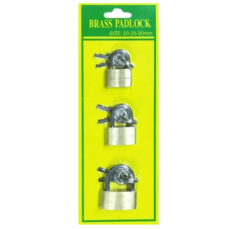 Set de 3 Candados de latón un material conocido por su resistencia a la corrosión y durabilidad, ideal para uso en interiores y exteriores. Cada unidad cuenta con 2 llaves.