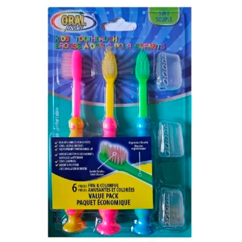 Set de 3 cepillos de dientes con funda protectora para mantener las cerdas limpias y seguras cuando no se utiliza. En la base presentan una ventosa que le permite al cepillo adherirse a una superficie para un fácil acceso. Colores variados y forma atractiva para los pequeños de casa.
