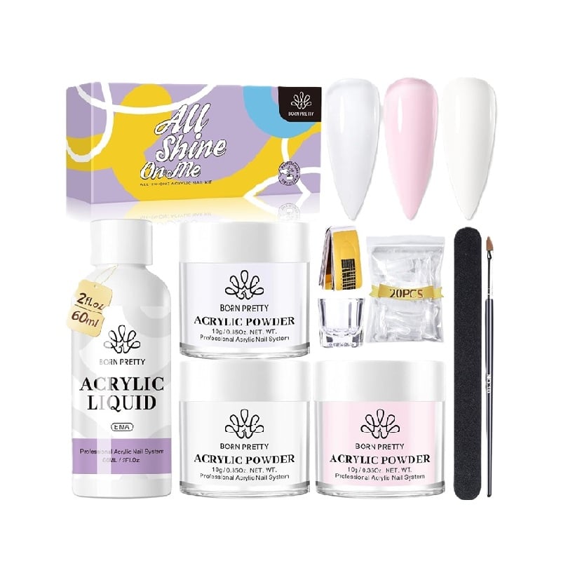 Set Polvos Acrílicos para Uñas marca: BORN PRETTY , Acrilico uñas Polvo 3 Colores Blanco Rosa Polvo Acrilico con Líquido Acrílico para Uñas Set, Pincele Acrílicos Adecuado para Principiantes y Expertos.