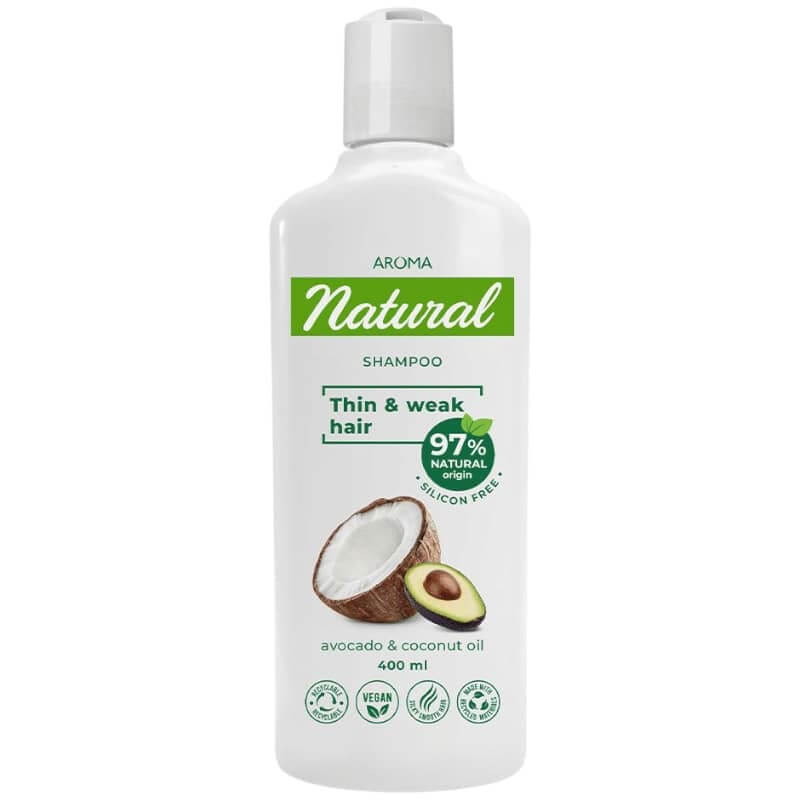 Shampoo Natural de aguacate y aceite de coco, para cabello delgado y débil.