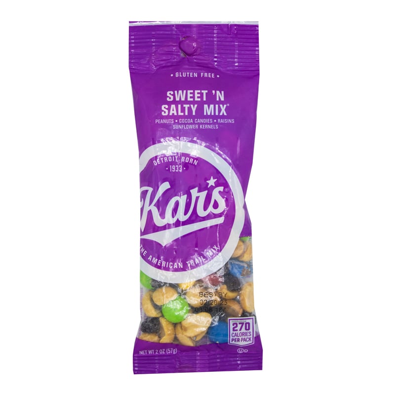 Mixto de maní, caramelos de chocolate, uvas pasas y semillas de girasol. Libre de gluten.