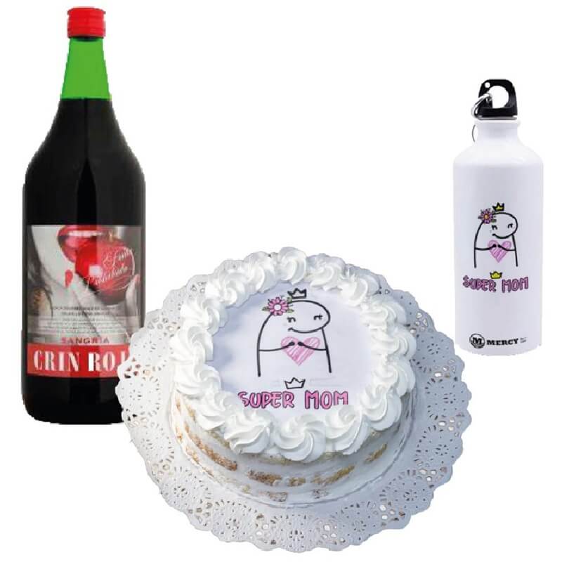 – Cake semidesnudo de nata, bizcocho de vainilla o chocolate, relleno y cubierto con crema de chocolate o vainilla. Decorado con papel comestible, temática por el día de las Madres. (20 cm) 8 personas aproximadamente.