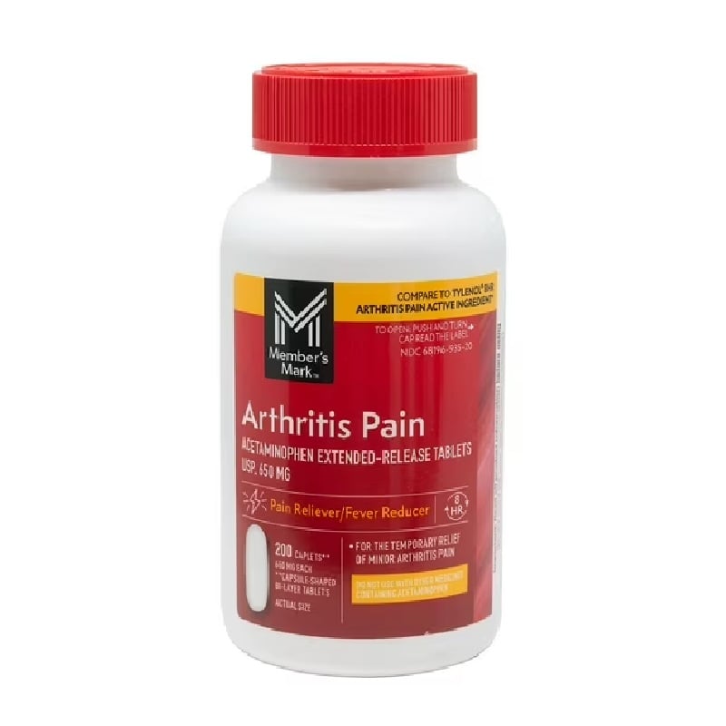 Tabletas de liberación prolongada Member’s Mark para el dolor de artritis, 650 mg de acetaminofén, 200 unidades/paquete, 2 paquetes.