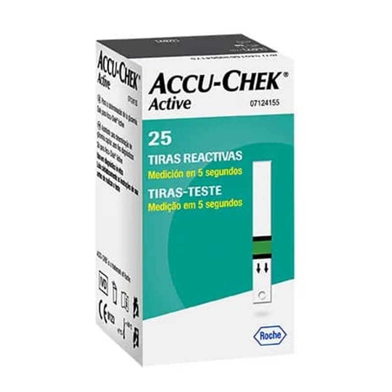Estuche de tiras reactivas Accu-Chek que realizan automonitoreos de glucosa seguros y rápidos. Resultados precisos en 5 segundos.