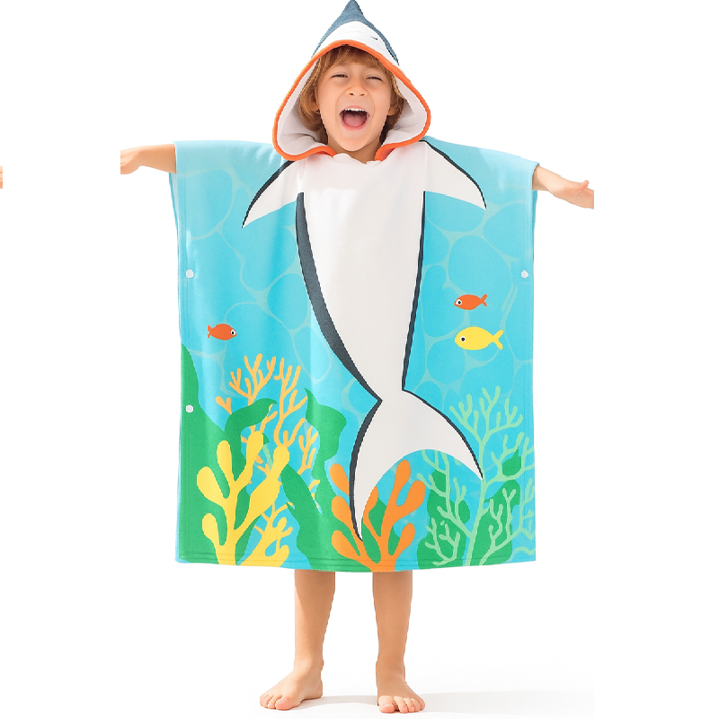 Toallas de Playa de Tiburon para Niños, Joiedomi. Con mochila con capucha, toalla de baño para niñas y niños de 3 a 10 años, absorbentes, de secado rápido, suave de microfibra, poncho de pareo ligero