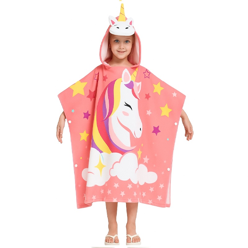 Toallas de Playa de Unicornio para Niñas, Joiedomi. Con mochila con capucha, toalla de baño para niñas y niños de 3 a 10 años, absorbentes, de secado rápido, suave de microfibra, poncho de pareo ligero