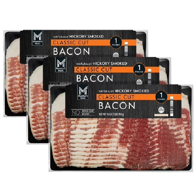 Tocino ahumado naturalmente con nogal Member’s Mark, 3 paquetes de 1 Lb c/u
