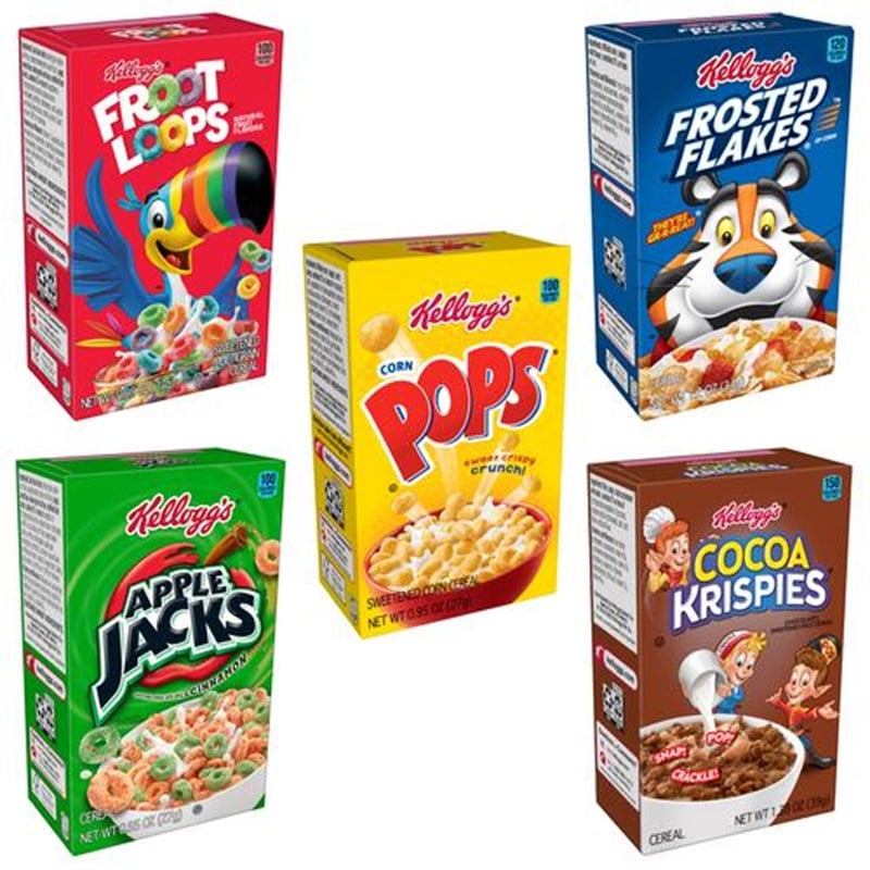 Una forma dulce, crujiente y crocante de comenzar tu día, los Cereales Kellogg’s son un delicioso desayuno frío para cualquier mañana de la semana. Con cinco cereales sabrosos, el Paquete Variedad de Cereales Kellogg’s es una buena fuente de al menos siete vitaminas y minerales. Empaquetados de forma individual y convenientes, estos deliciosos cereales son un compañero ideal para las loncheras, bocadillos después de la escuela y momentos ocupados. Solo agrega tu leche favorita de lácteos o de nuez o disfrútalos como un dulce crujiente directamente de la caja miniatura. Este paquete de variedades contiene tu elección de Corn Pops, Froot Loops, Apple Jacks, Copos de Maíz Azucarados de Kellogg’s y Cocoa Krispies.