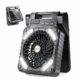 Ventilador de camping con luz LED de energía solar Lynker, ventilador portátil recargable a batería, 4 velocidades, 35dB ultra silencioso, carga USB-C/solar, temporizador de 8 horas para uso en tienda, emergencia, actividades al aire libre (negro)